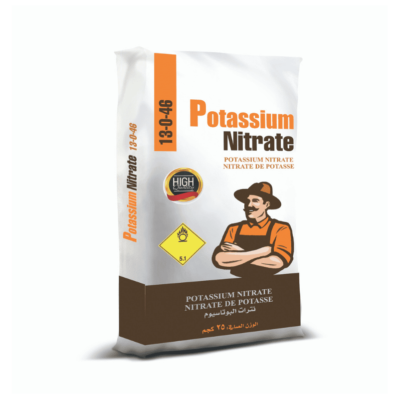 سماد كيماوي ذواب 100% ، يحتوي على 13% عنصر النيتروجين بصورة  نترات  وعلى عنصر البوتاس 46%  بصورة أكسيد البوتاس.